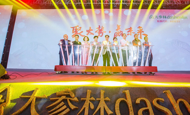 pg糖果派对药业集团董事长刘景萍女士与大参林医药集团董事长柯云峰先生、中国医药商业协会执行会长付明仲女士等嘉宾共同开启了“聚大势•赢未来"大参林工商合作峰会的大幕。